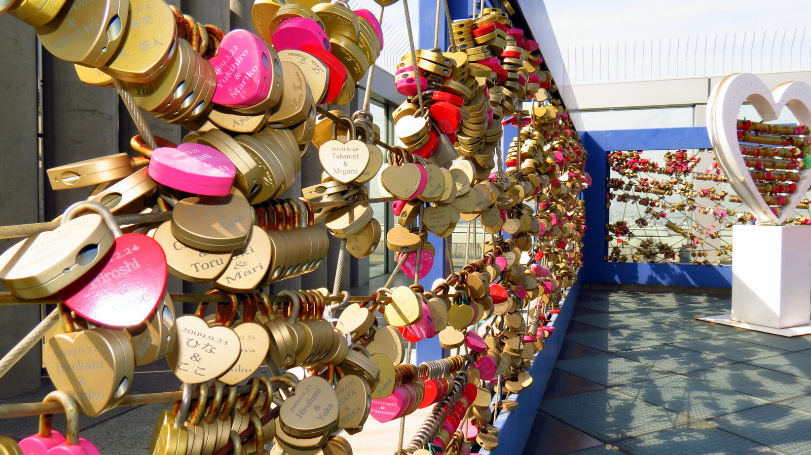 We ascended a number of tall buildings to get an idea just how massive Osaka prefecture really is (it has a population of about 9 million) and pledged our love to each other at the special love seat aloft the hanging garden, which doesn’t have a garden on the top so not sure where its name derives.