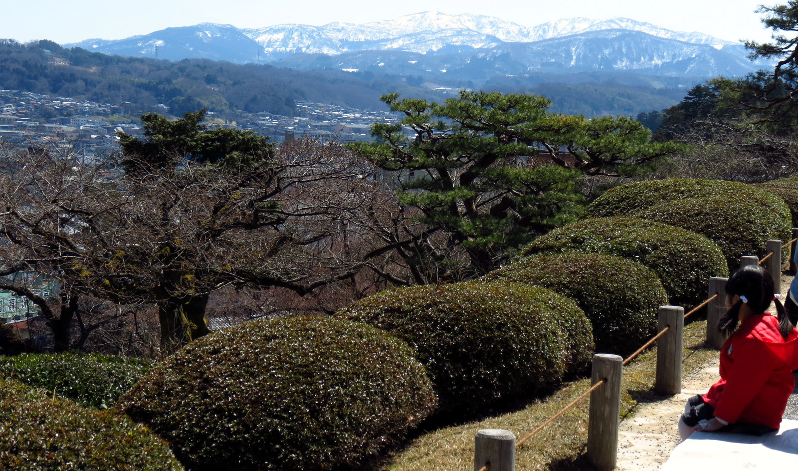 The gardens are perched on a hill in the middle of the city, and were full of pine trees and a whole variety of fruit blossom trees. Not surprisingly cherry was in abundance, but also plum trees. The fruits trees were in blossom, but looking at some of the pictures in the tourist guide I think the gardens probably look a whole lot more impressive in summer and Autumn. It was worth a visit though and we were not disappointed exploring a traditional Japanese garden.