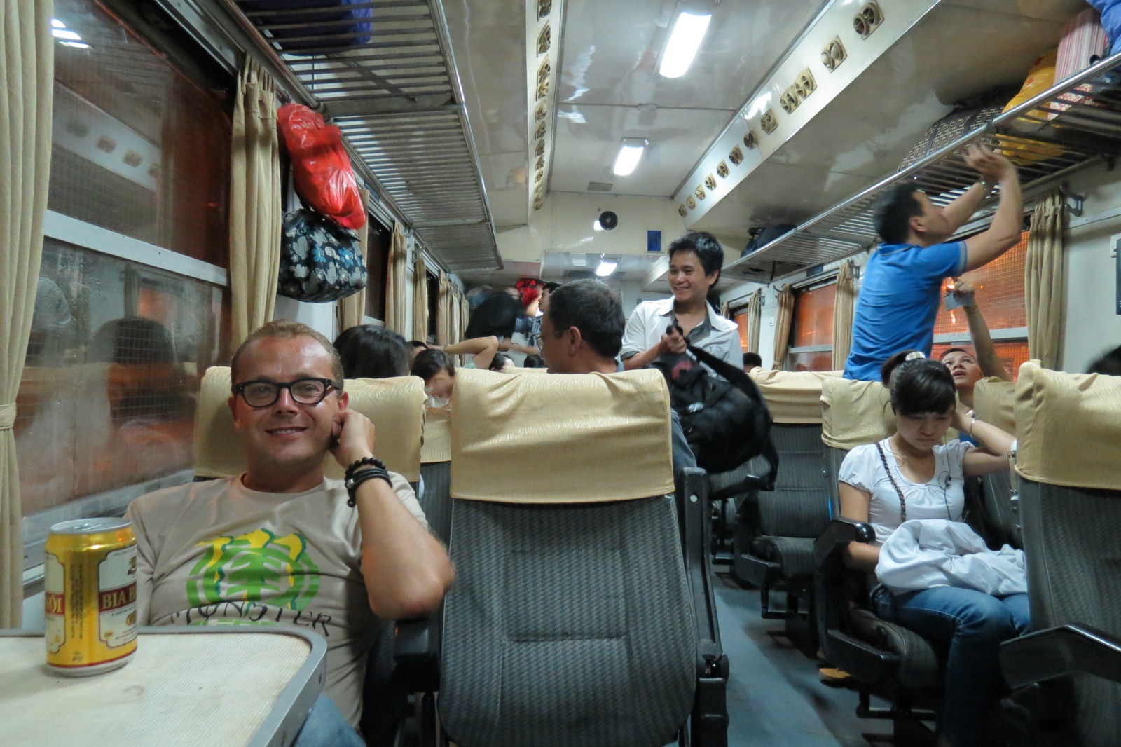 As we expected, the carriage slowly started to fill up with Vietnamese holiday passengers.  We were on seats facing each other, the only two sets of seats configured like this in the carriage.  Before departure the seats next to us remained empty; we prayed it would stay this way.