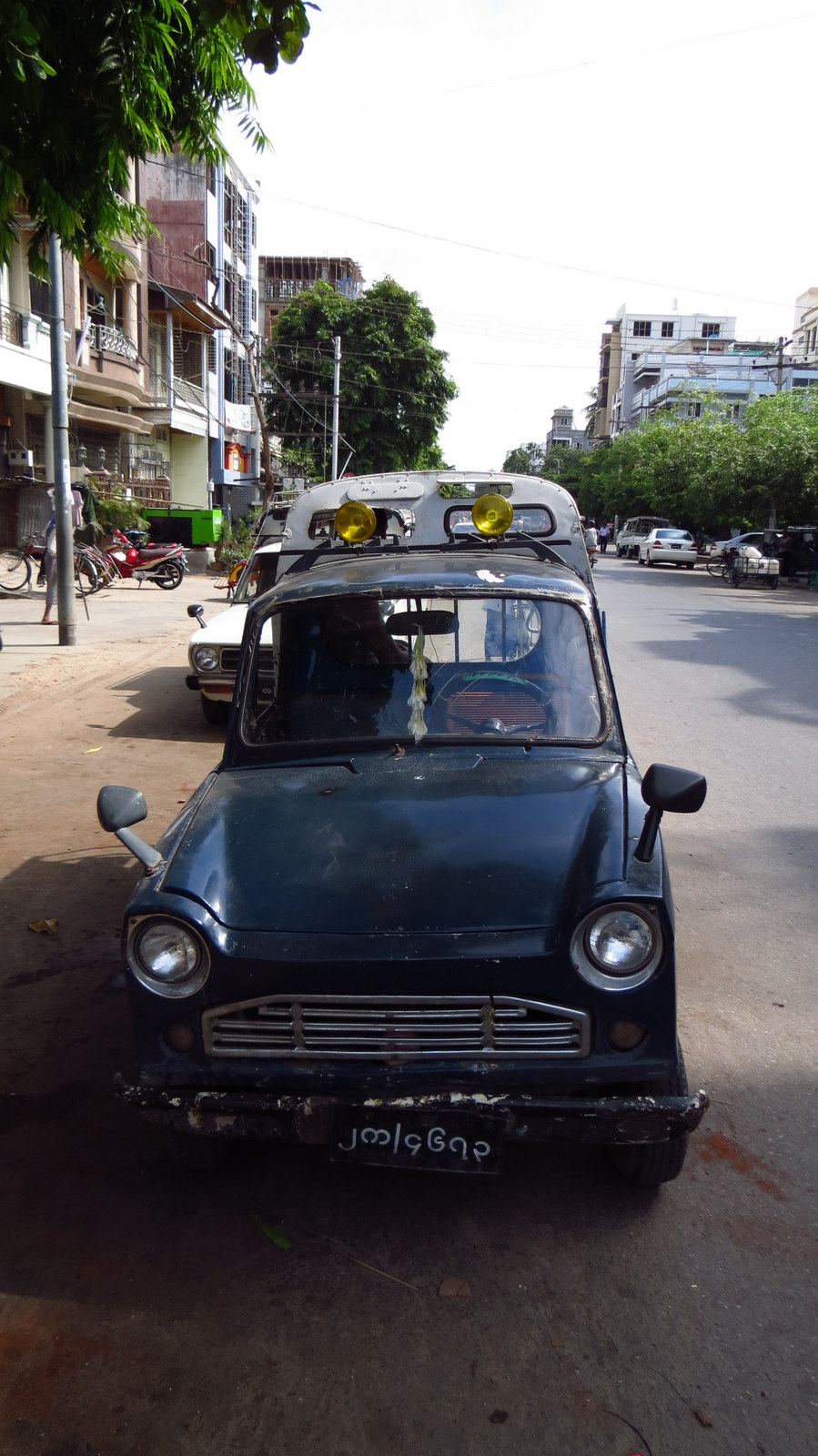 After some bartering with taxi drivers about town, John managed to reduce this day trip by 20% from a starting price of 25,000 Kyat (US$30) to 20,000.  Now I would like to say that for this we got a luxurious car with aircon for the day.  However, unless you want to double this price you will have to settle, like us for a clapped out rusty 1960’s Mazda pick up van that has had two benches welded in the back and a bit of foam wrapped round the seats.