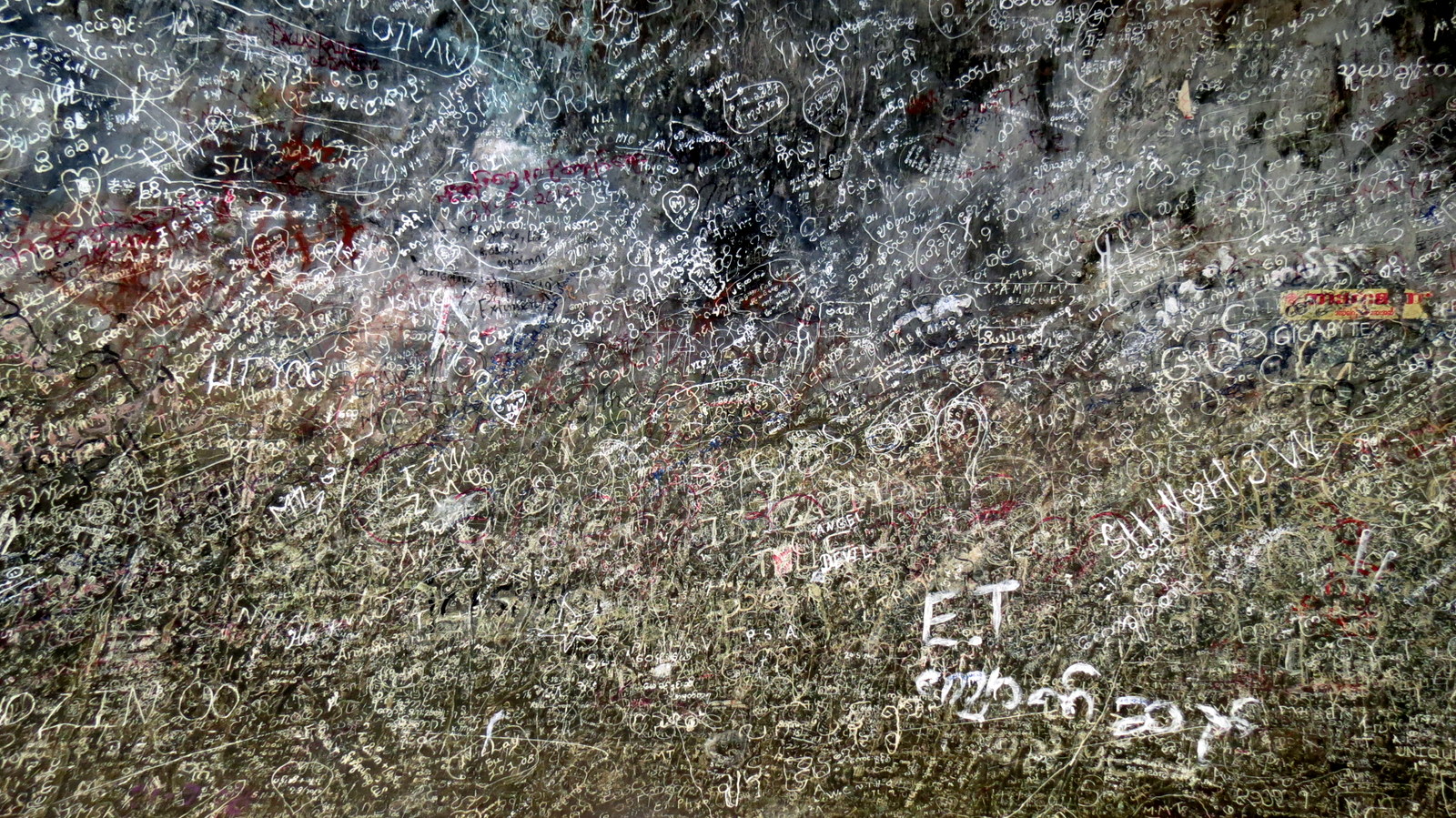 A quick trip to ring the Mingun Bell and peek under it where I was greeted with a fantastic surprise of a graffiti covered interior.  In fact we have seen lots of Burmese graffiti at tourist spots around the country so far.  We think its a positive love thing rather than them saying “Peter Smith is an idiot” or some other such abusive missive you might see around England.  If you know Burmese perhaps you can enlighten us. The bell claims its fame by being the largest “uncracked” bell in the world – Moscow has a much huger bell but it has a crack in it.   I guess we will give them that one.