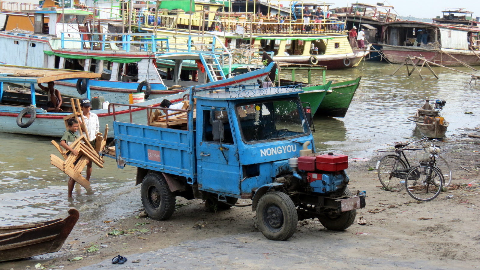 You need to arrive at boat jetty for the 9am  departure, but my advice is get there earlier.  Not because getting your ticket is any problem  – it isn’t.  Just pop into the shack by the boats and pay your fee, 4000 Kyat – but watching the activity around the boats is fascinating.   Old trucks with tractor engines will pull up by the boats and all manner of goods will be offloaded, by the male and female porters.   We saw beautiful wooden teak chair parts come off a boat ready to be shipped to a local tradesmen.   Women washing babies, clothes and pots and pans  in the river’s edge and just the general hubbub of the area will keep you entertained for an hour.