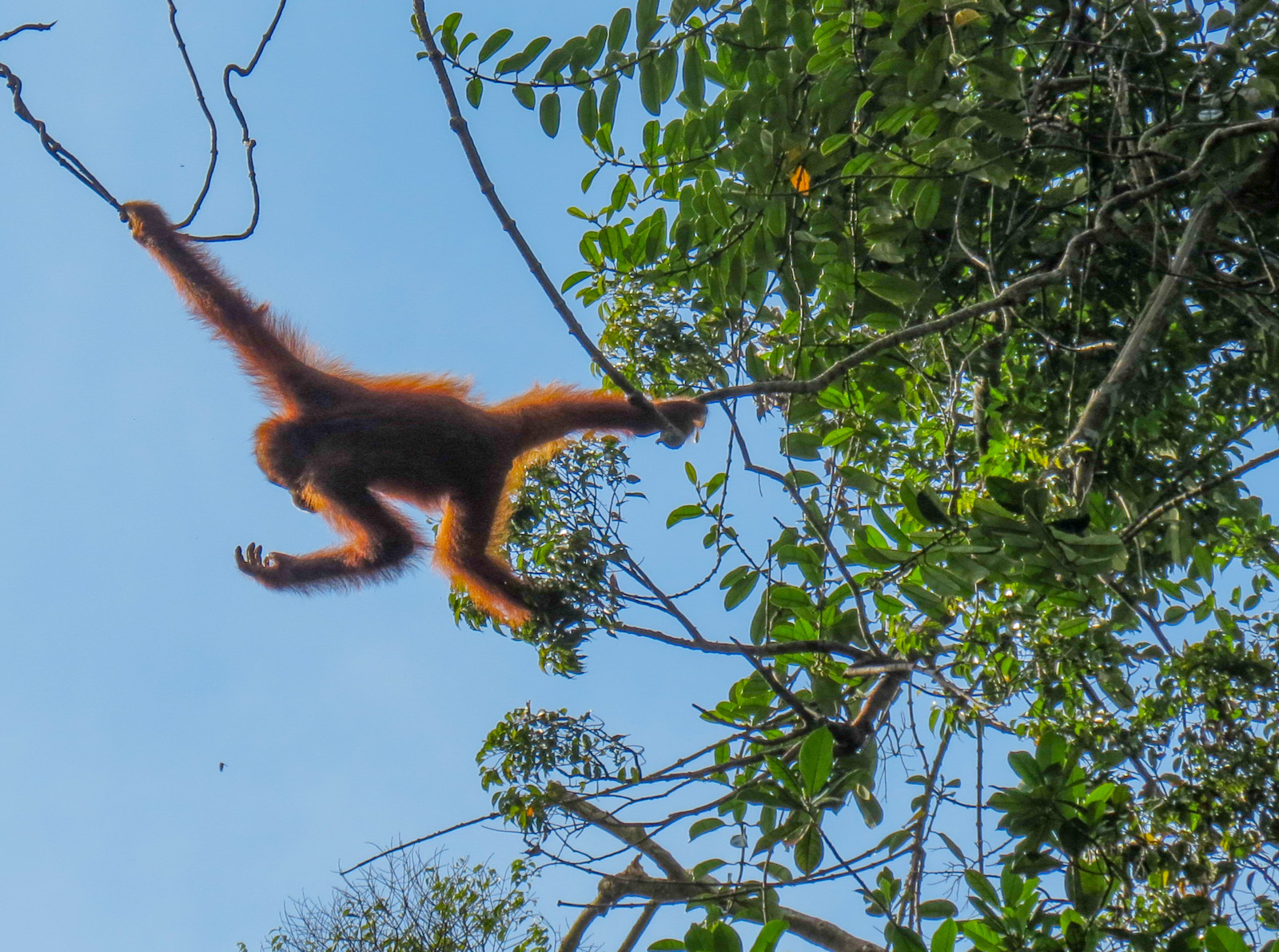 You should remember you are not visiting a zoo or a safari park safely cocooned in your car or minivan. You are visiting the orang-utans in their natural habitat, they mostly spend their time building their nightly nests high up in the trees and generally doing what these creatures do in the wild; which is keep themselves to themselves forage and gather enough food to keep themselves alive.