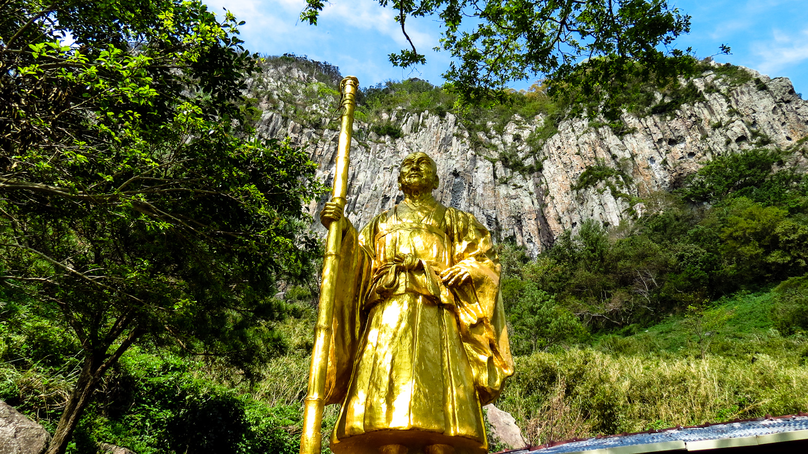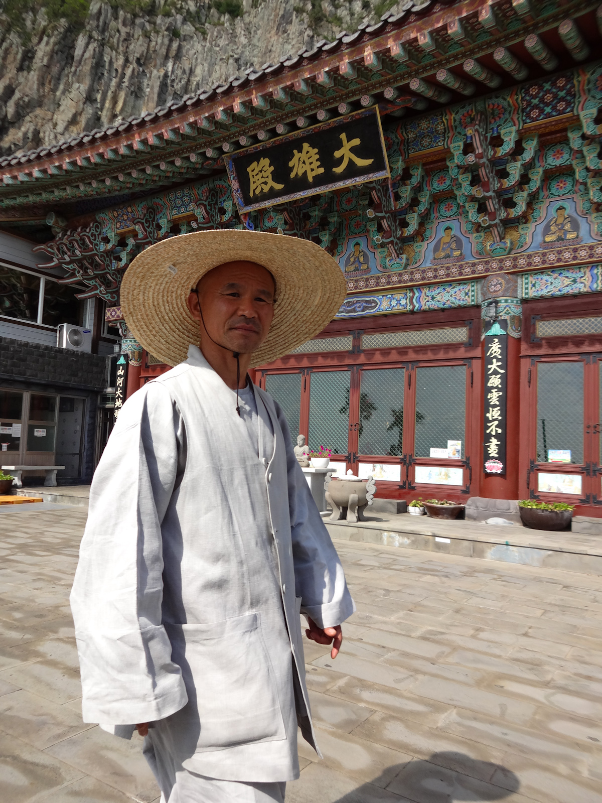 We weaved our way up the Yongmori Coastal Road along some pretty beaches and town towards to Mount Sanbangsan. Sadly the caves and pathways were closed due to recent typhoon activity which was a shame. There is a beautiful temple at the entrance and this kept us busy watching the monks at work. All along the coast you will see sea debris against the rocks during the typhoon season as well as a shipwrecked boat or two on the shore. It doesn’t detract from the natural beauty and regular clean-ups take place. We made a side trip from here to the Daejeong Confucian shrine – not a great deal to look at but its story of the exiled monks is interesting.