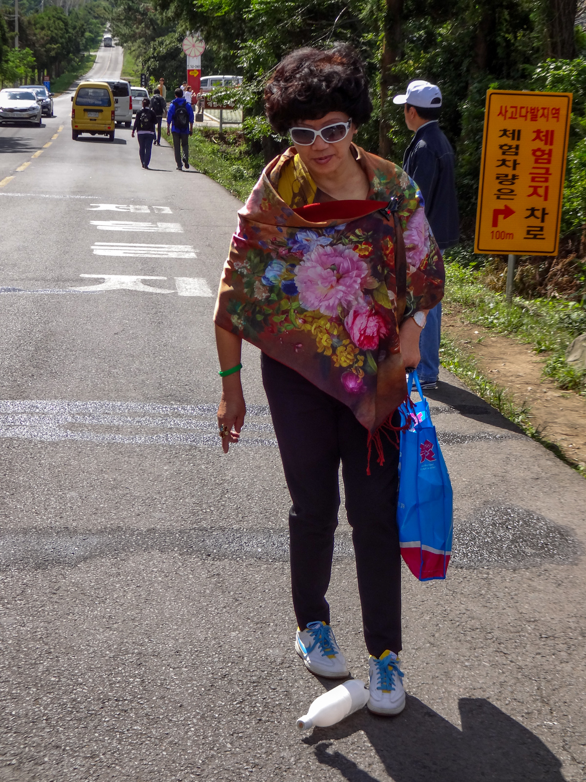 The Mysterious Road was mysterious for us as to why people come here. It is supposed to be one of those roads that appear to be on an uphill slant, but when you pour water on the surface or put your car in neutral the car or water should roll uphill. We spent fifteen minutes watching tour guides pour water on the road and saw very little trickling uphill. After this literal damp squib we set back on road 1139, better known as the 1100 road as along its route you will reach the highest point at 1100 metres. They are nothing if not literal the Koreans.