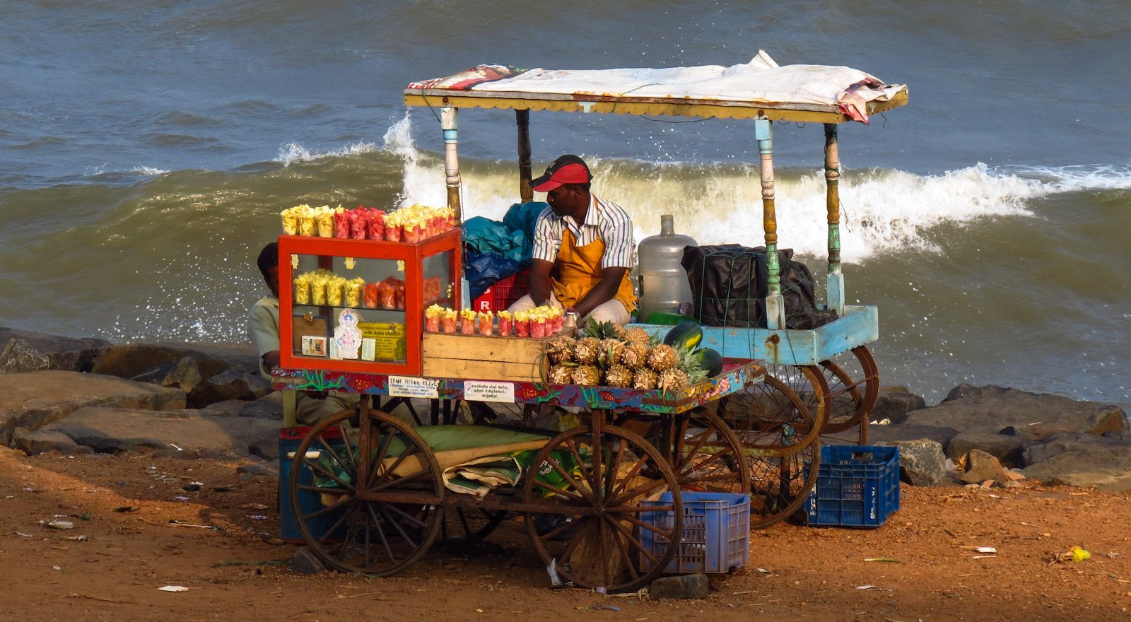 There are a few monuments and sights to see in Pondicherry but we had some of the best times simply wandering along the promenade or around the main shopping bazaars. The beach is not a sunbathers special – it consists of a pile of rocks on the sea front and a small patch of beach further south which is occupied by the various food and trinket vendors.