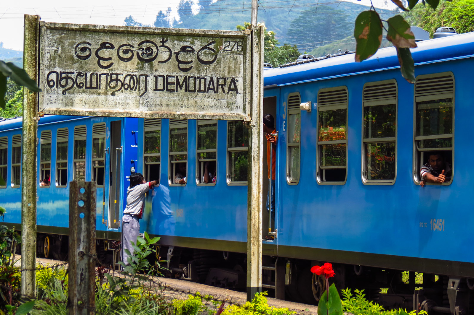 After the temple visit we headed north to Demodara Village and up to the rail station to continue my train spotting apprenticeship . The station is up in the hills past the village and also is close by to the train track that does a complete loop around one of the local hills. The train was in as we approached so we waited with the locals by the level crossing much to their amusement as we took pictures of the train and the local station building.