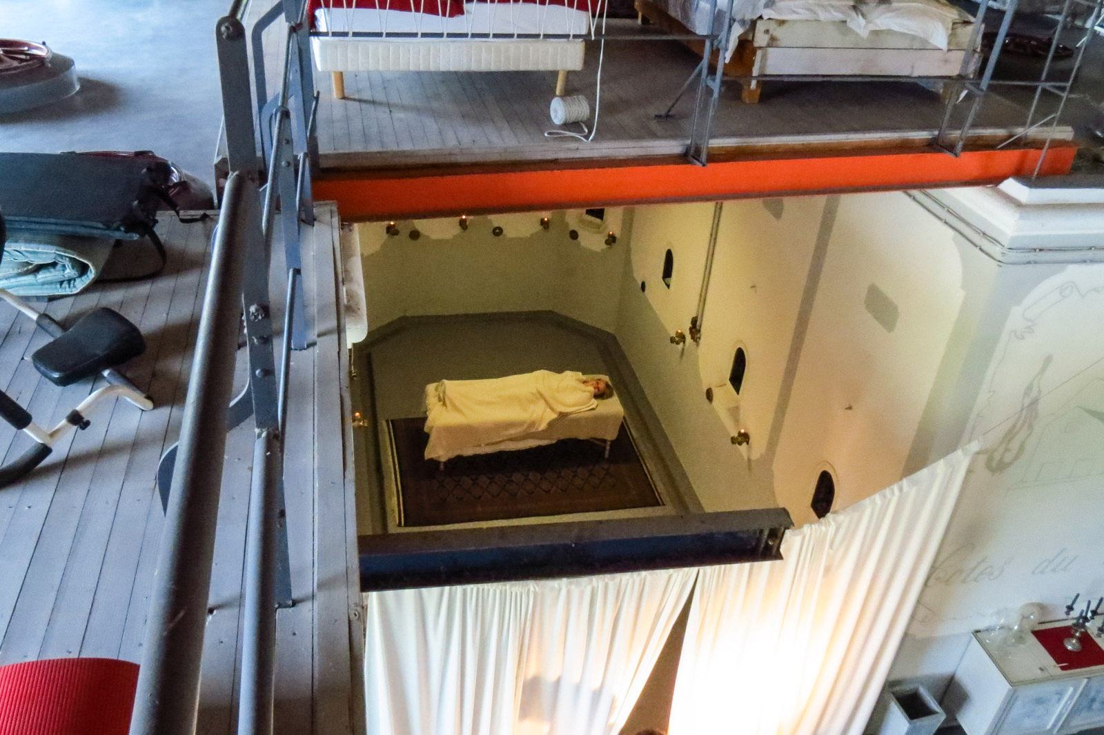 The studio had been set up around the old wine tanks sit in the property, screens erected, tea lights lit, video lighting illuminated, me undressed and in a robe and we were about to make a start on my treatment.